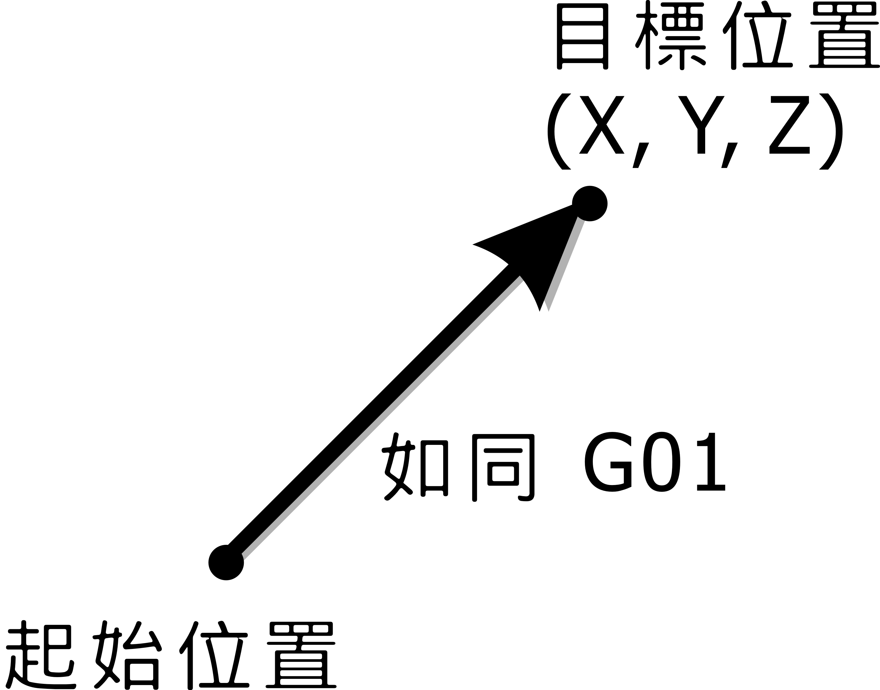 若 R = 0: 若僅給 X_Y_Z_ 而 R = 0,將以直線走到目的地。若僅給 G02/G03,其後無任何 X_Y_Z_ 或 R_ 值,將無任何動作執行。