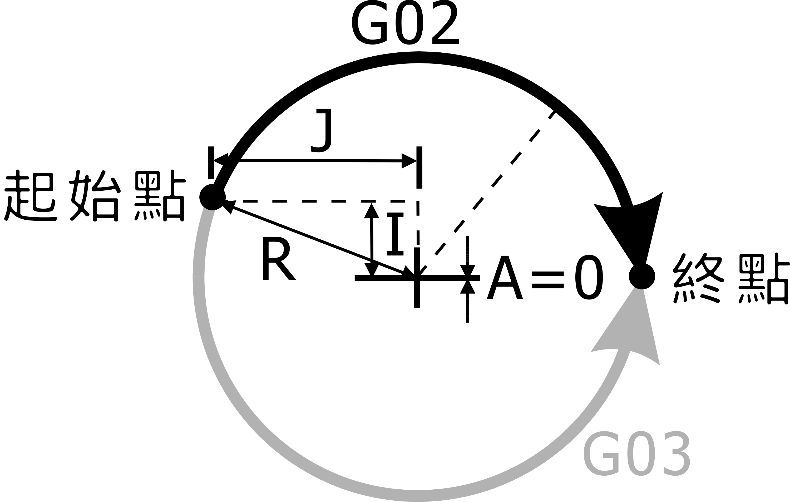 格式:(A)G90 G02(G03)I_J_A_,(B)G91 G02(G03)I_J_A_