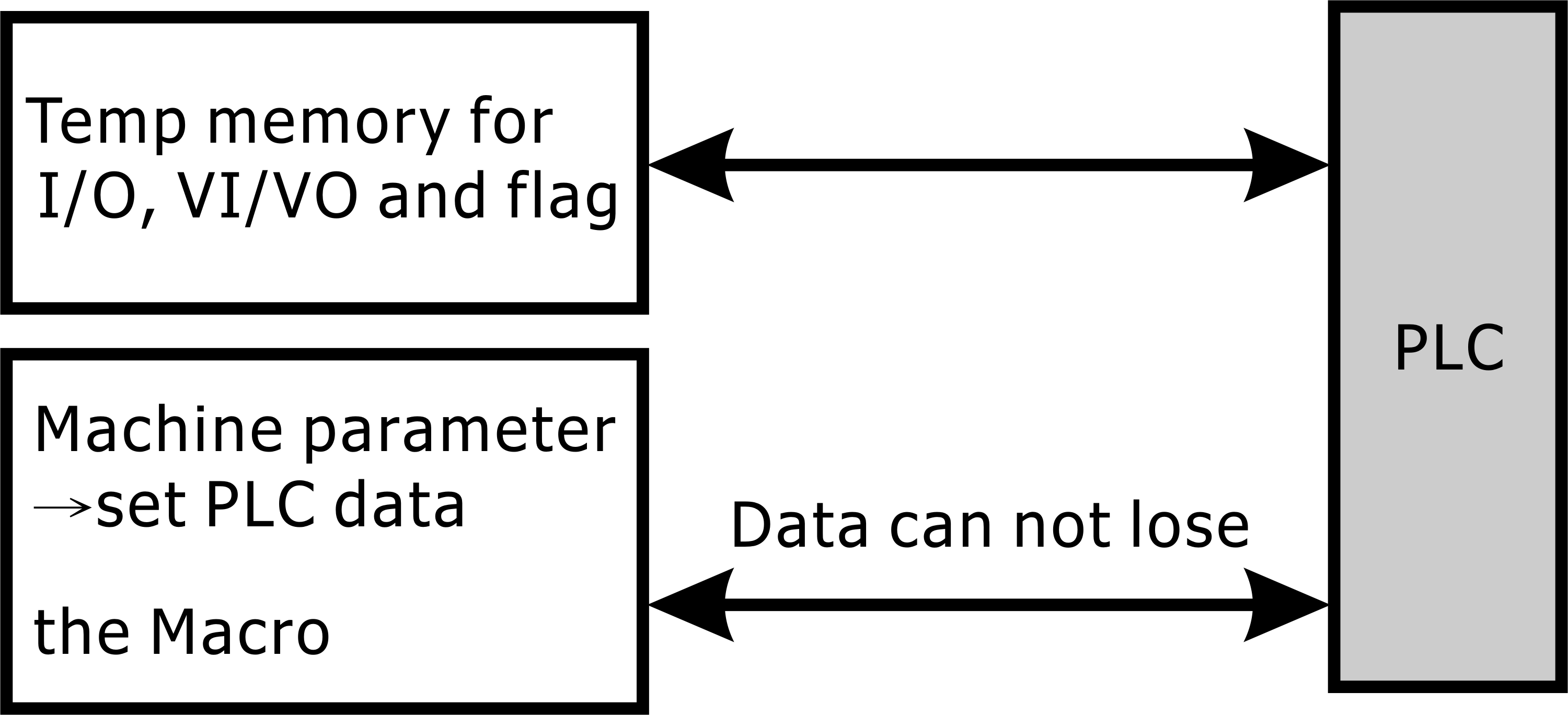 I/O temporary area will disappear due to shutdown data, can not be saved to the next boot, but some of the information must be retained as a parameter, or status; Therefore, these do not allow the loss of information to be stored. INCON-M84/M86/M86R controller "mechanical parameters → set PLC data" is a data backup sub-area can be stored in addition to share with the NC macro variable data area is also a data backup sub-area. INCON-M84/M86/M86R controller can use these two areas as PLC data backup area.
