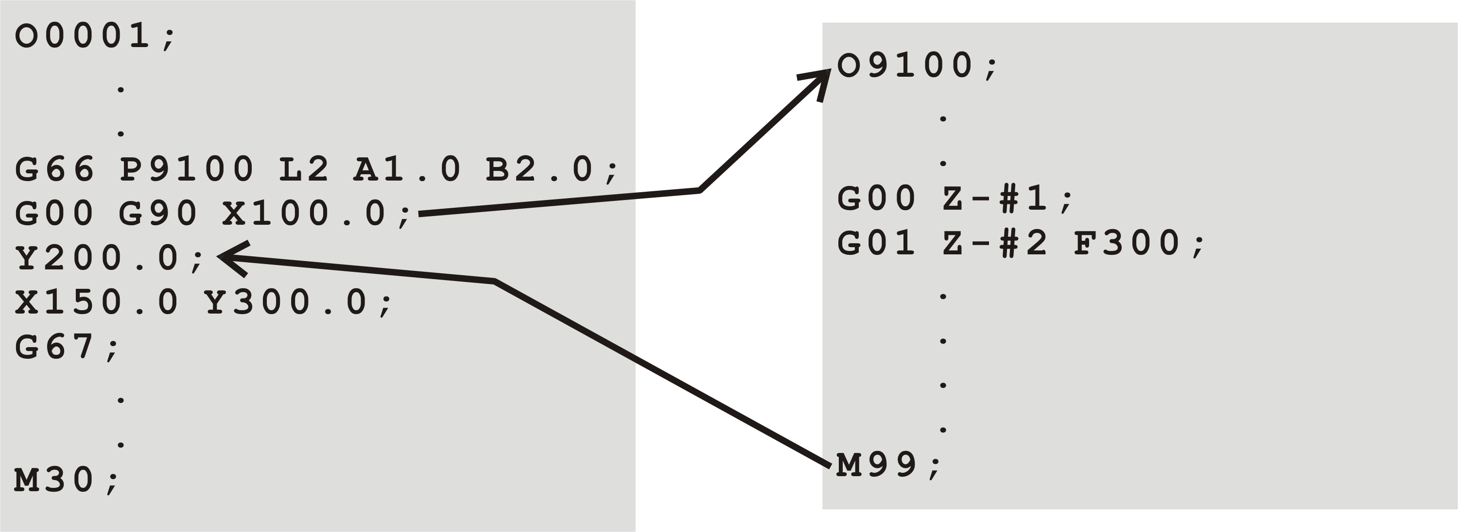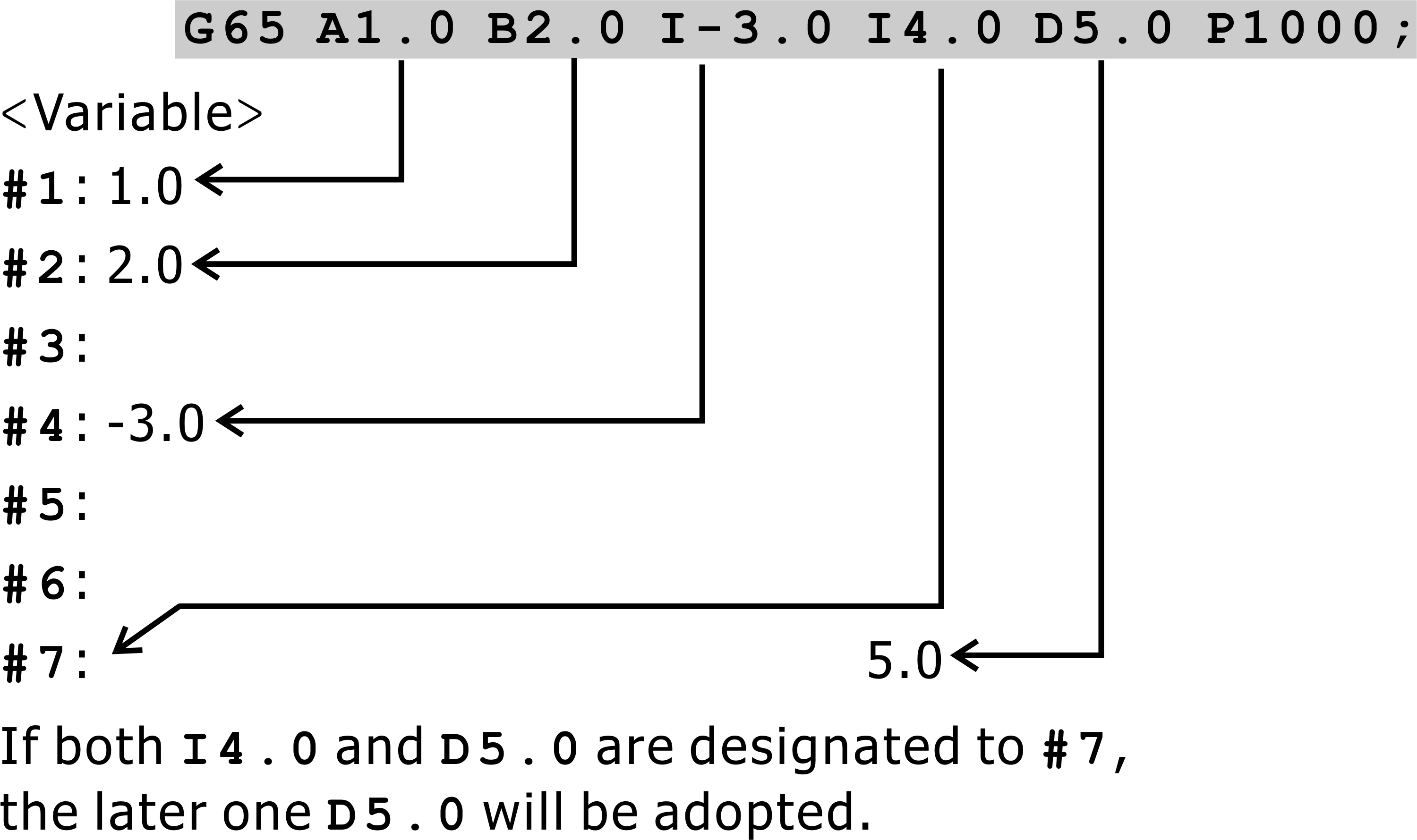 - Variable of macro (argument) only can set on G66 block.