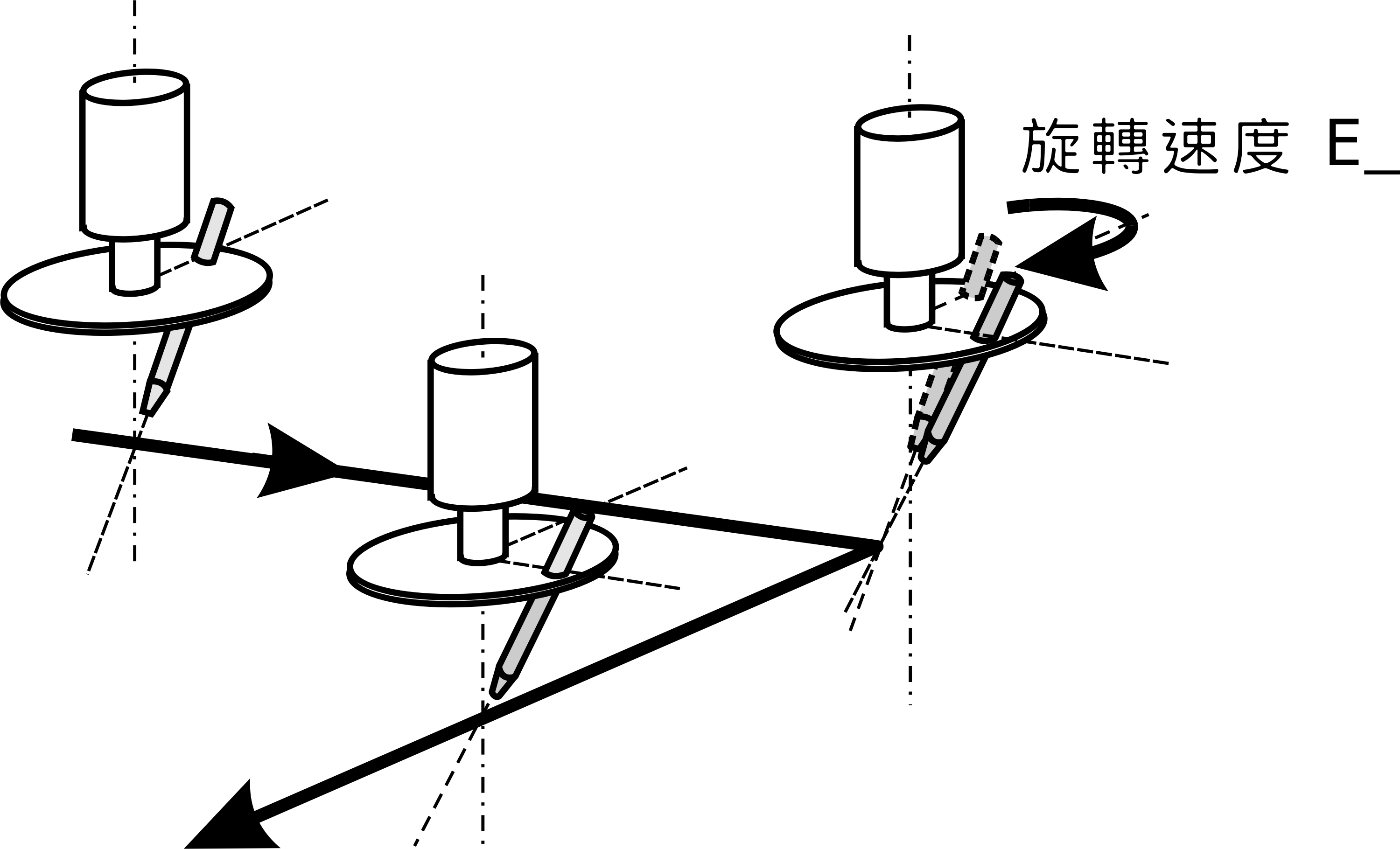 E_ 定義該第四軸在兩直線路徑中,要改變方向而需要旋轉時的每分鐘旋轉速率。此速度之定義與一般切削之進給速度相同,以機構上的最小移動量為單位。