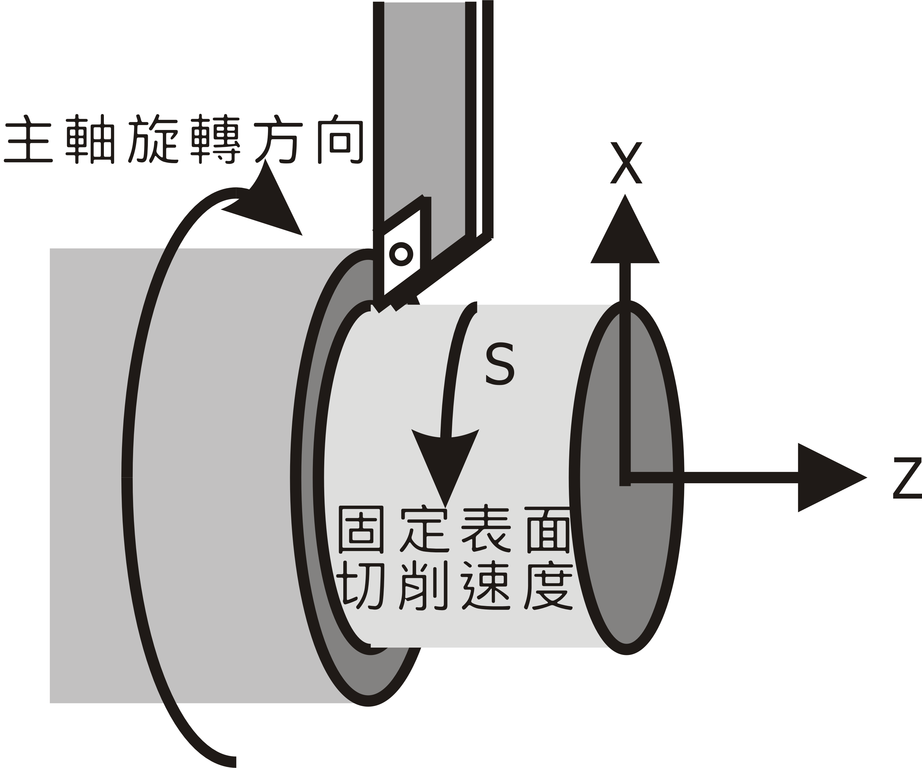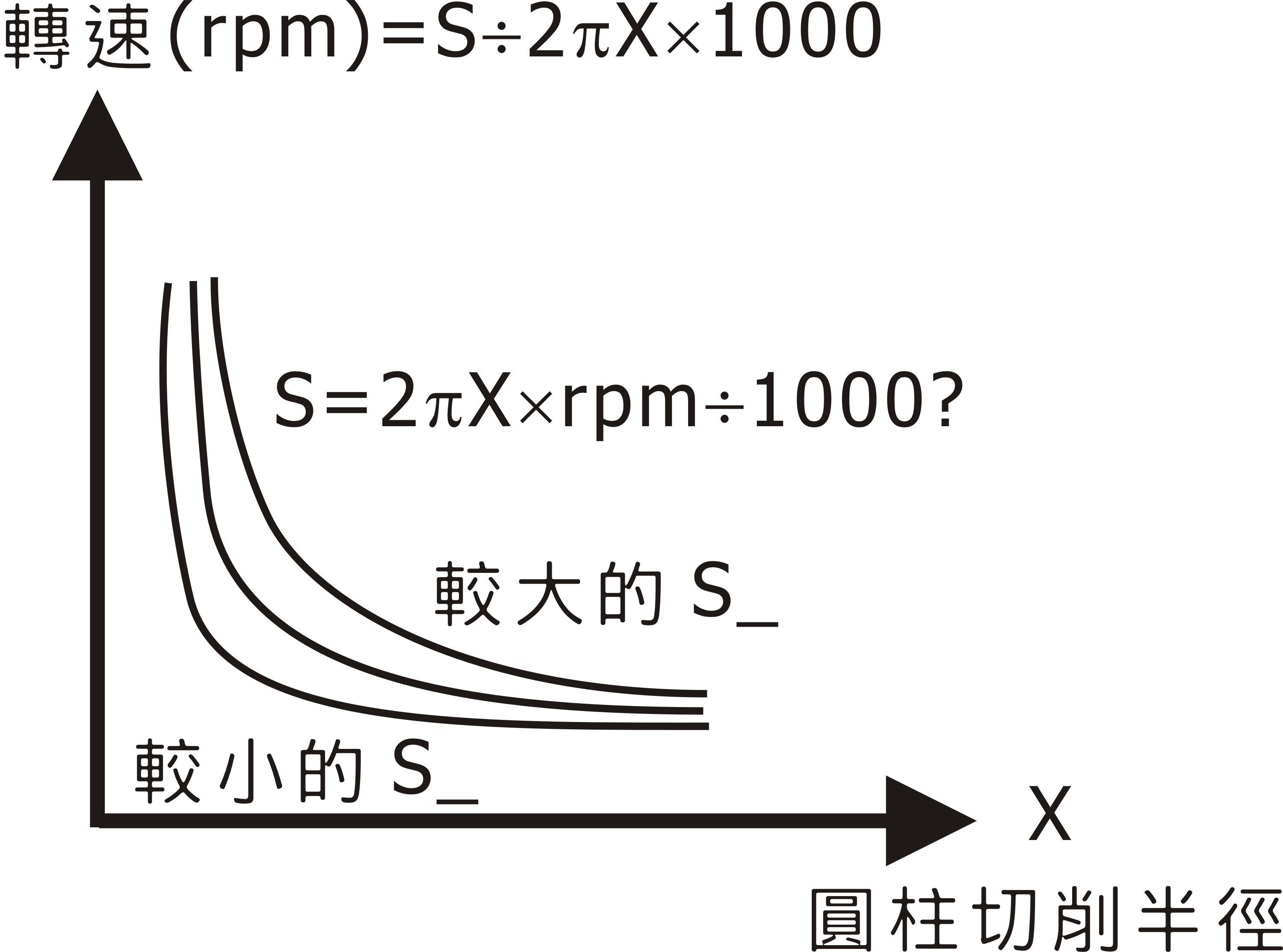 定表面速度控制是假設以 Z 軸為工件的旋轉軸,而 X 軸為工件之半徑,因此在執行定表面速度控制之前,X 軸程式座標零點需設於工件圓心軸上才能得到所要的表面進給速度;主軸的轉速亦將隨著半徑(X 軸)的變小而逐漸增加。