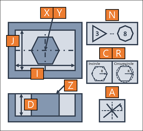 The distance from the origin of workpiece to the center of the polygon in X direction. |