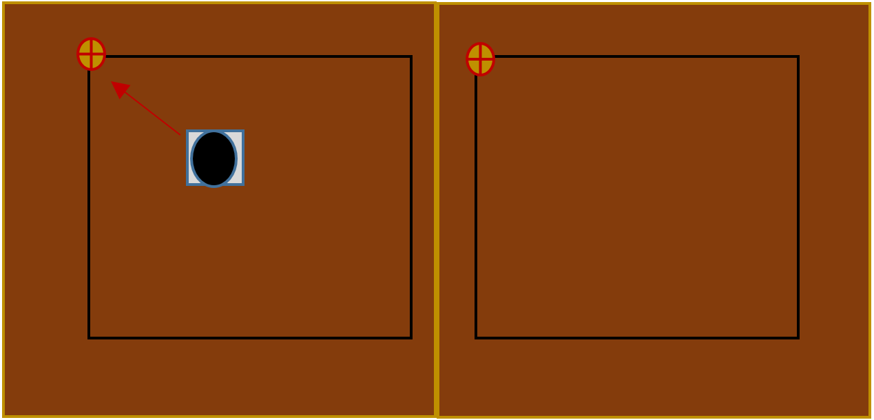 Use a pen to mark clearly the program dots on the part of the workpiece to be processed. For example, the upper left corner of the program origin requires two process areas. |