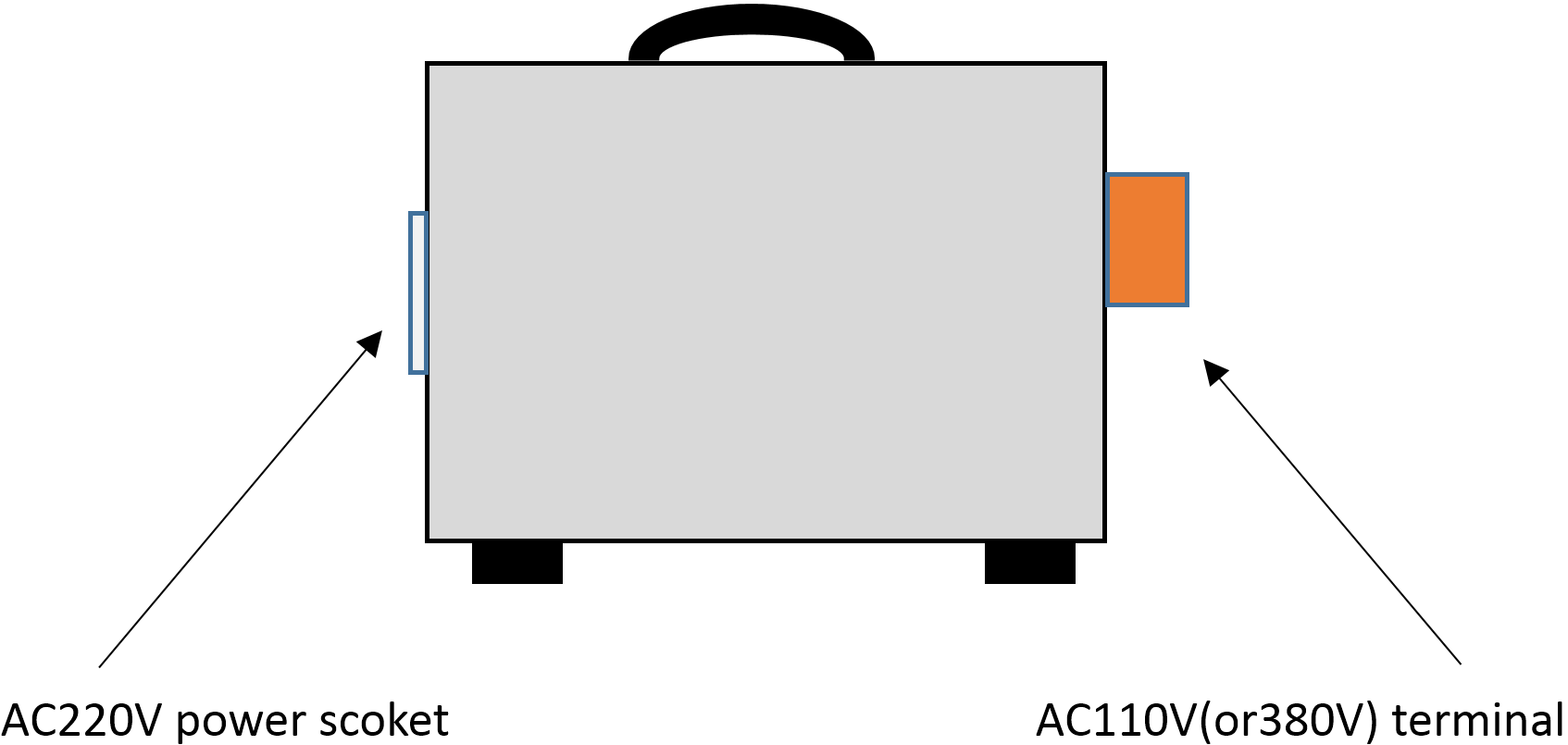 Intek Technology's transformer option is a completely covered transformer, one end has terminal for connecting AC 110V (or 380V), and the other end is an AC 220V power socket.