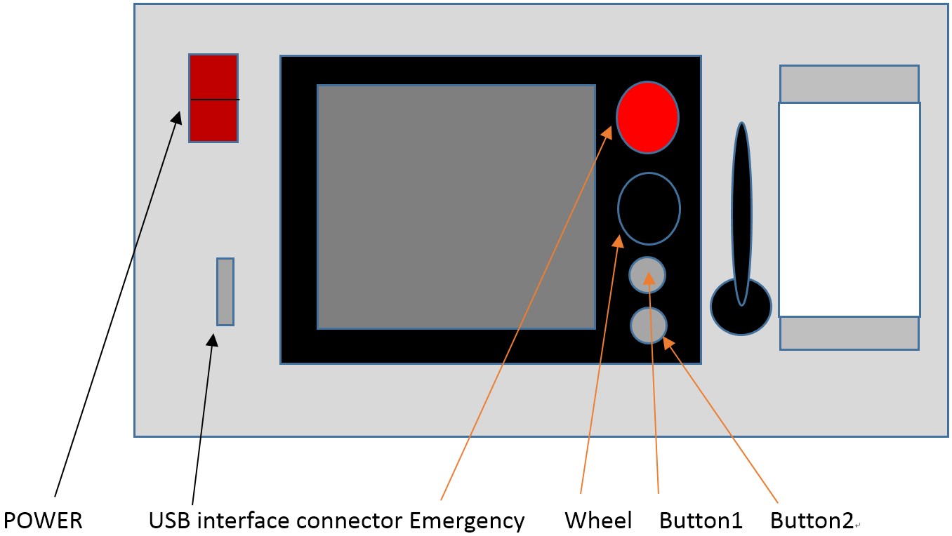 The i83 operation panel is equipped with a power switch, M83 controller, and USB interface connector. There is an emergency button on the M83 controller. |