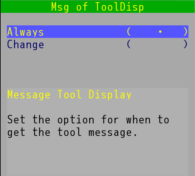 When [ ] or ( ) is shown on the right side, it indicates current selection of this multi-choice parameter.