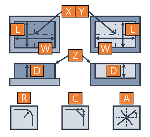 The entry point is defined by the geometry and the removal width. The first cutting would make the tool center moving along the edges of removal width. There is no limit for the removal width when SideMode is OutsideIn. Otherwise, the removal width must less than the distance from center to the geometric boundary when SideMode is InsideOut. |