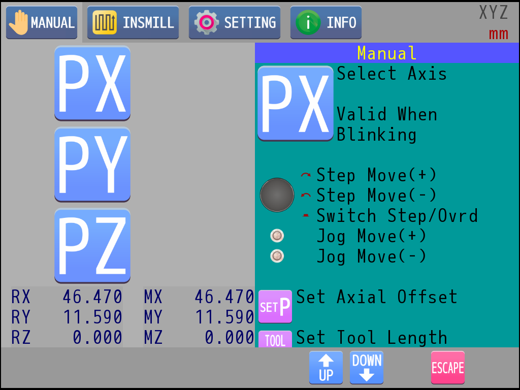 - While in manual page, it can apply to move the axis step by step. Clockwise is for positive direction, conversely counterclockwise is for negative direction.