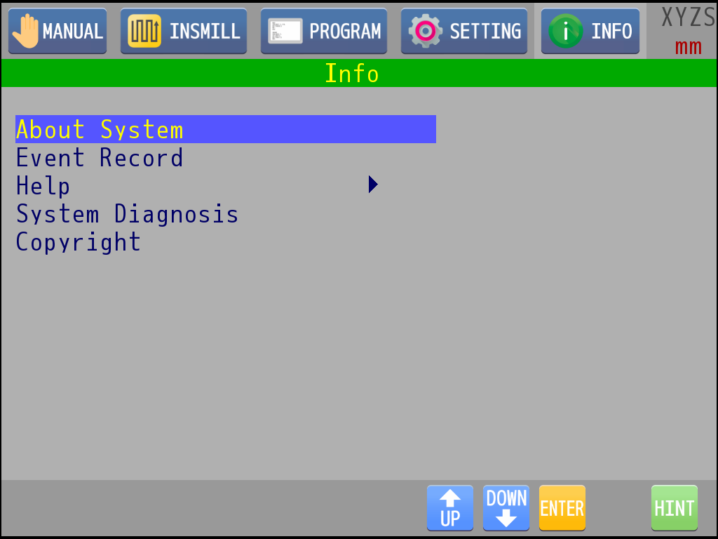 Operation of Info page is similar to the menu-type operation of setting page.