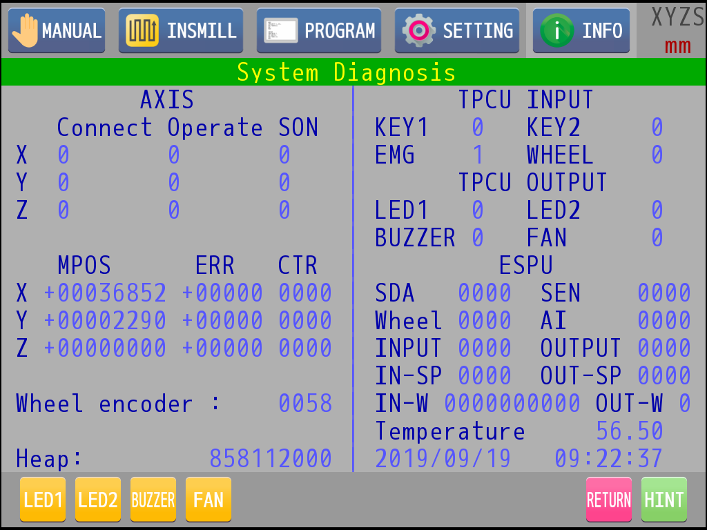 Touch this icon to switch on the the cooling fan for 2 seconds. |
