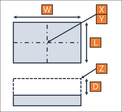 The distance from the origin of workpiece to the center of the rectangle in X direction. |