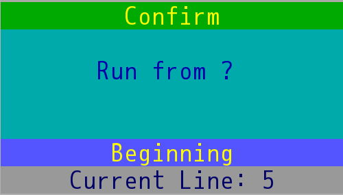 If key 1 is pressed and cursor is not at the first line, a "Run from?" dialog will pop up. |