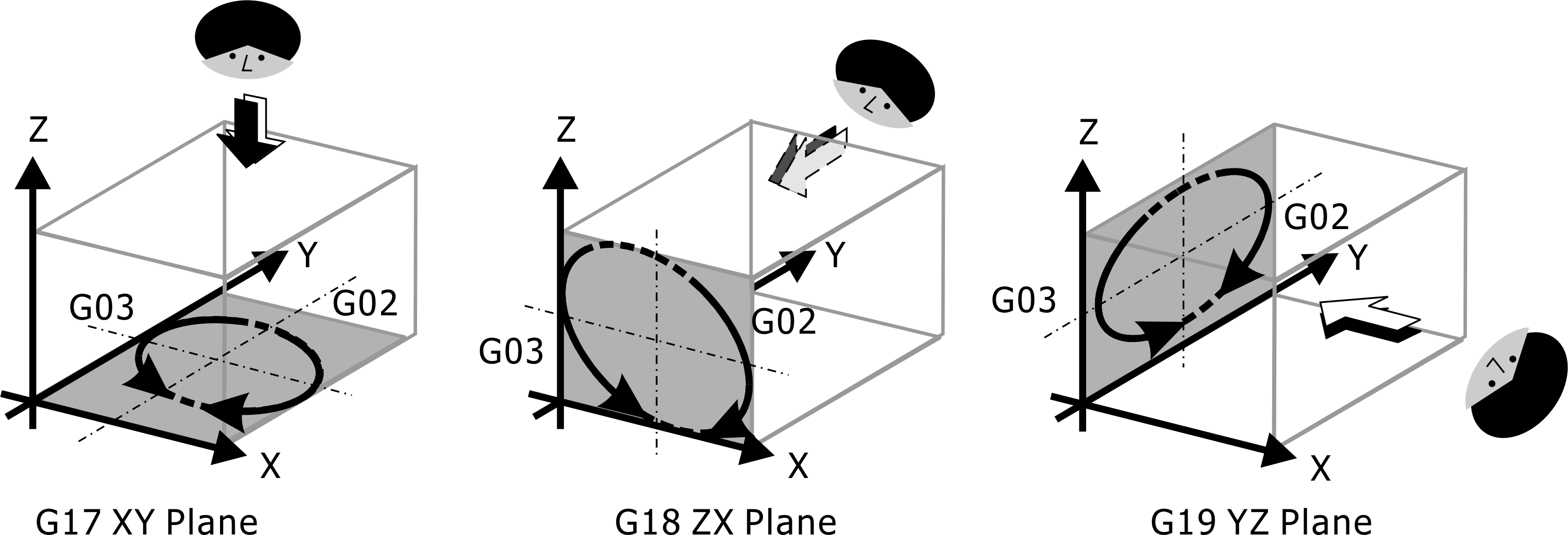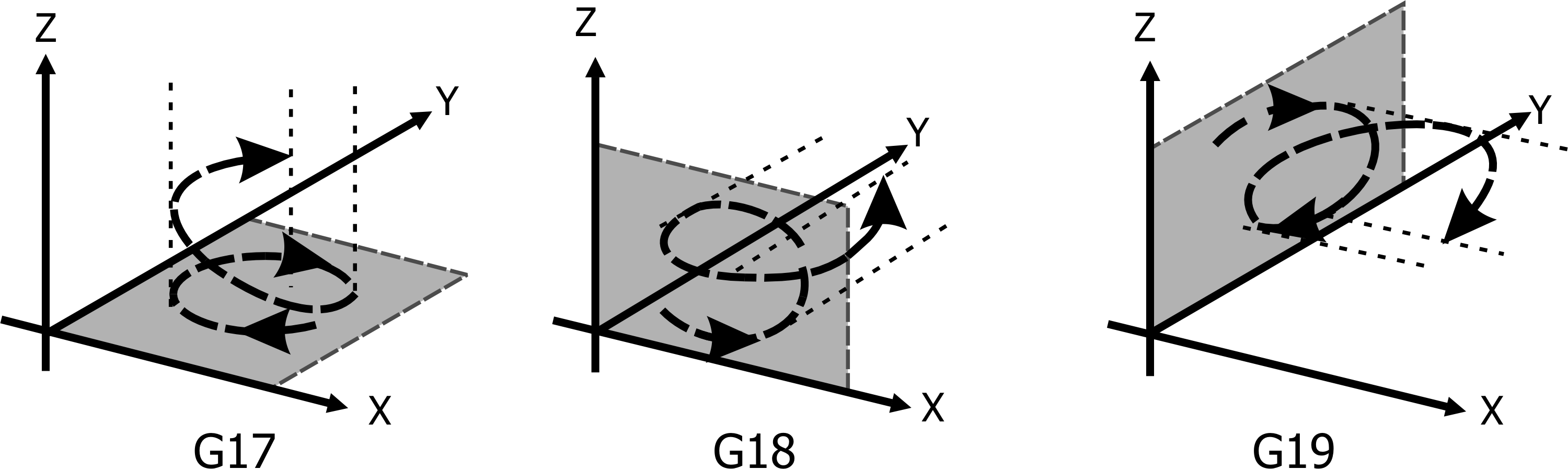 G17 G02(G03) X_Y_I_J_F_; G18 G02(G03) X_Z_I_K_F_; G19 G02(G03) Y_Z_J_K_F_; |