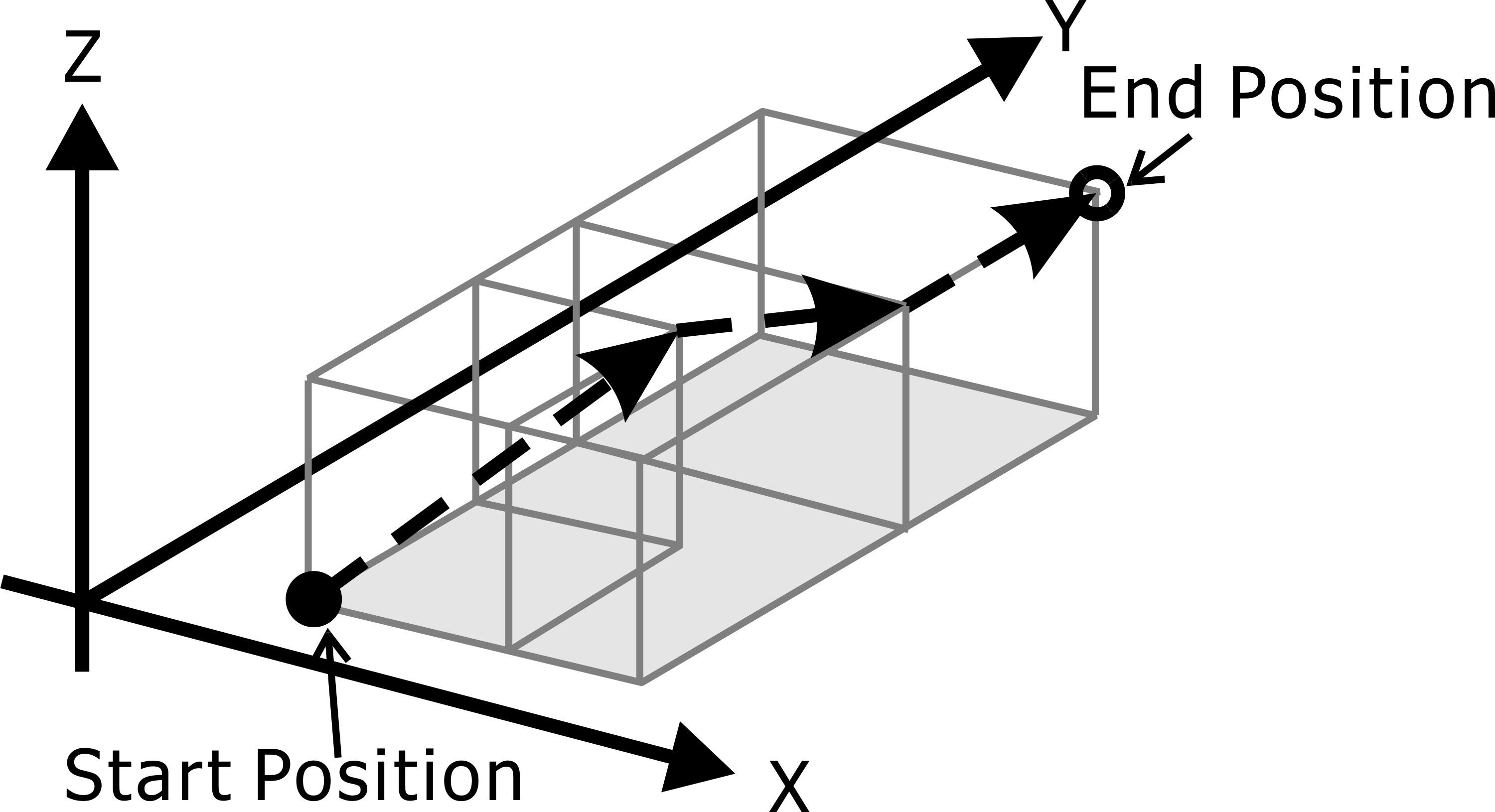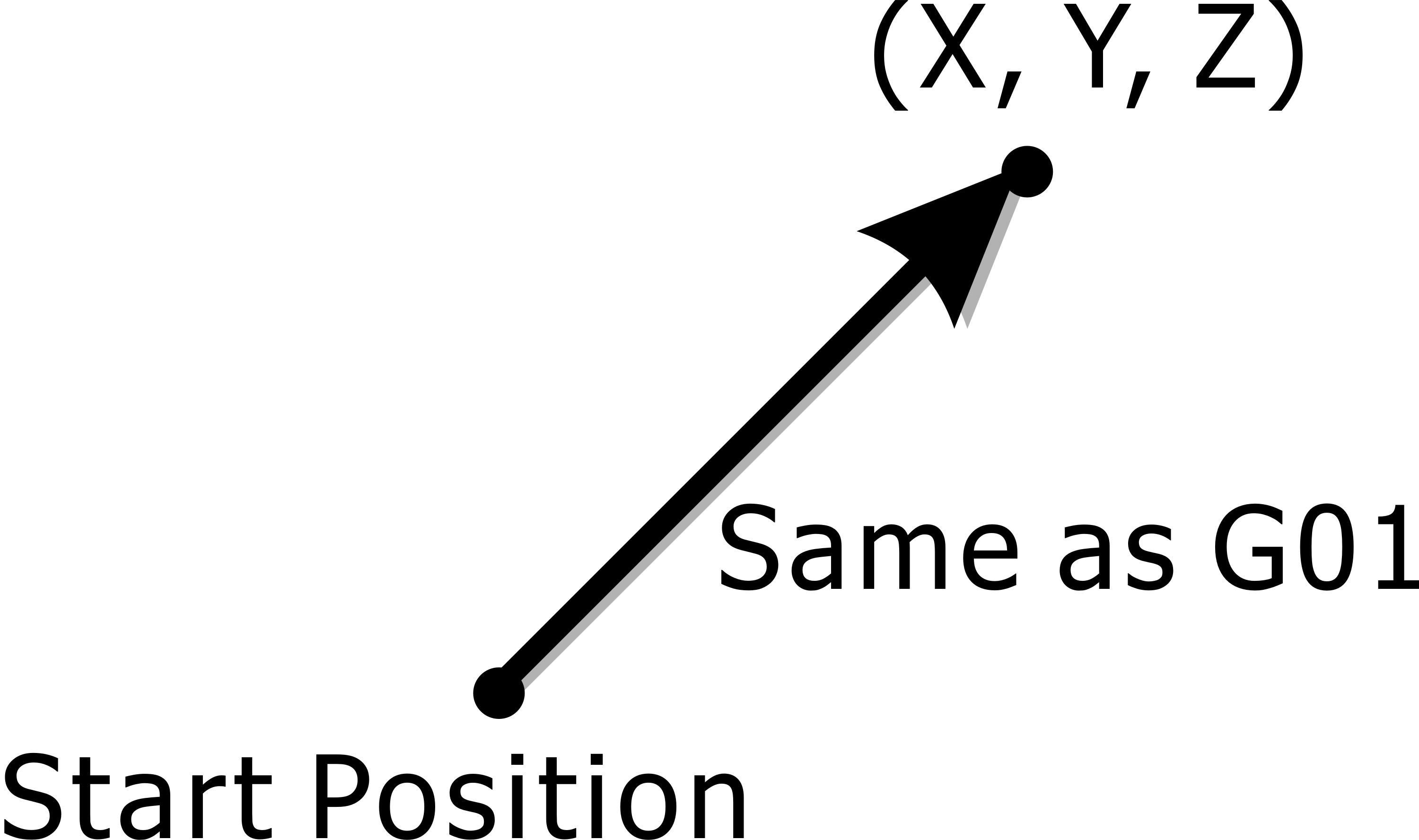 G00 initiates rapid traverse of tool to move from current program position to a specified program position X_Y_Z_. The traverse speed is the value of G00 speed in "Setting→Advanced→X/Y/Z Axis→Motion and Speed→G00 Speed" multiplied by G00 Feed Override %. G00 is a modal G code and remains effective until replaced by other motion G codes such as G01, G02, or G03. G00 can be 1-axis, 2-axis, or 3-axis simultaneous motion, the moving mode is Z axis first, and then X and Y axis.