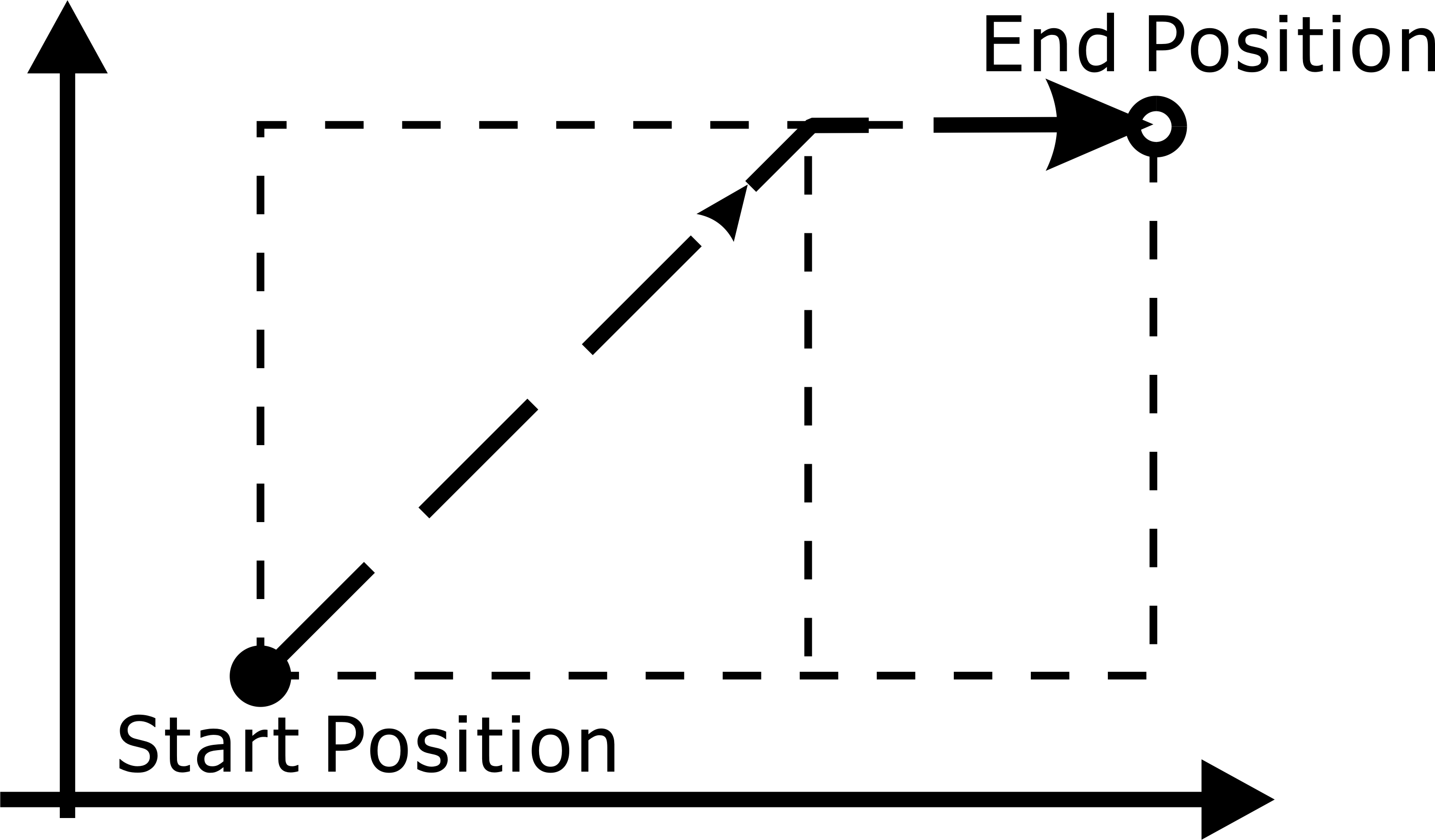 If d > 2R: If the value of R_ is less than half of the travel to the destination, a semicircle with R_ radius will be taken first, and then it will go straight to the destination. However, this circular instruction mode still remains valid.