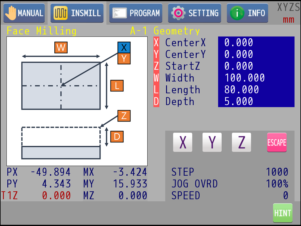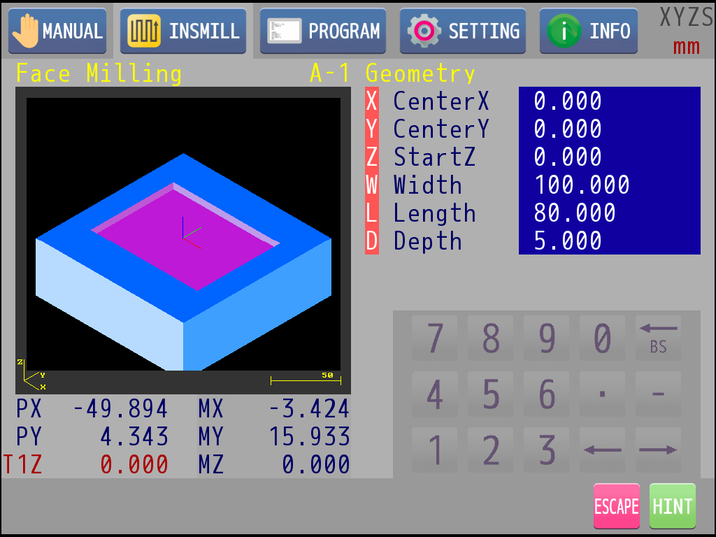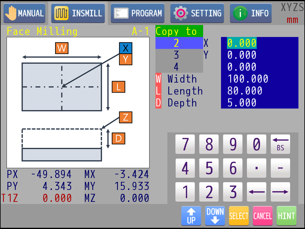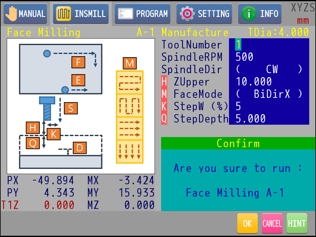 Press key 2 to exit the object editing page and return to the INSMILL main page. |