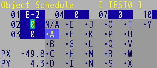 Select a schedule item and press key 1, the object selecting dialog (A, B, C...) will pop up. |