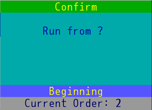 If key 1 is pressed and the currently selected item is not the first item, a "Run from?" dialog will pop up. |