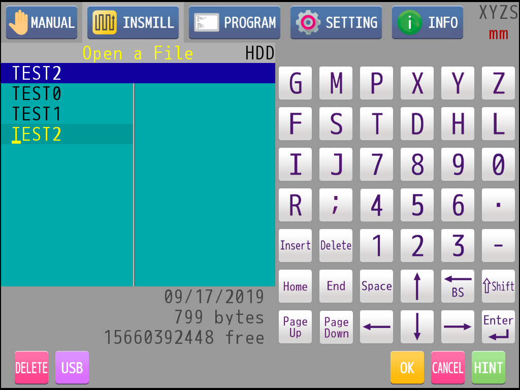 On this panel, touch "NEW" would reset the object schedule, touch "SAVE" would save the schedule to current filename, touch the "OPEN" and "SAVE AS" icons to open the file dialog.
