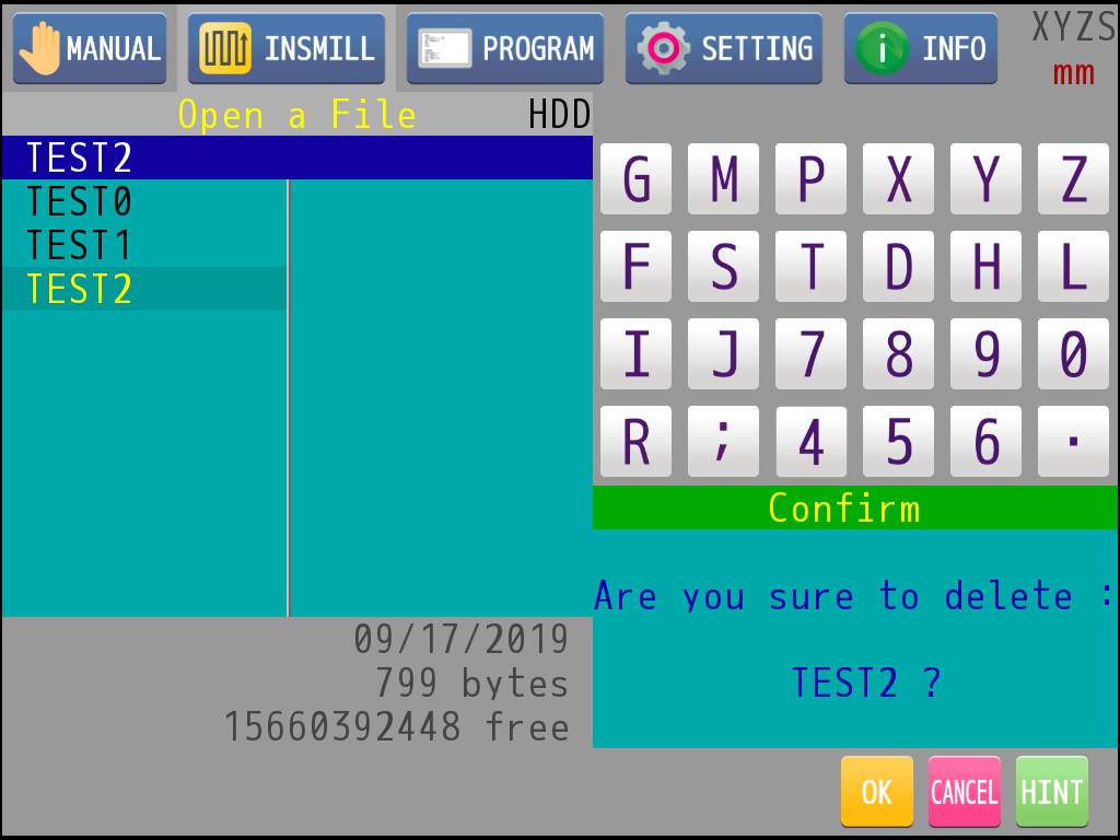 Select an existing file and touch "DELETE" icon below. A Confirm window will pop up. |