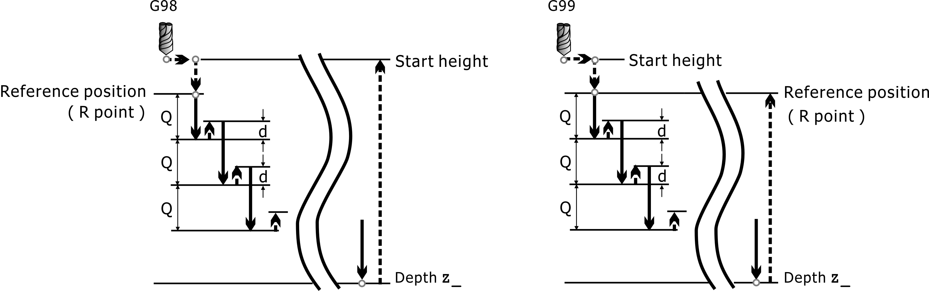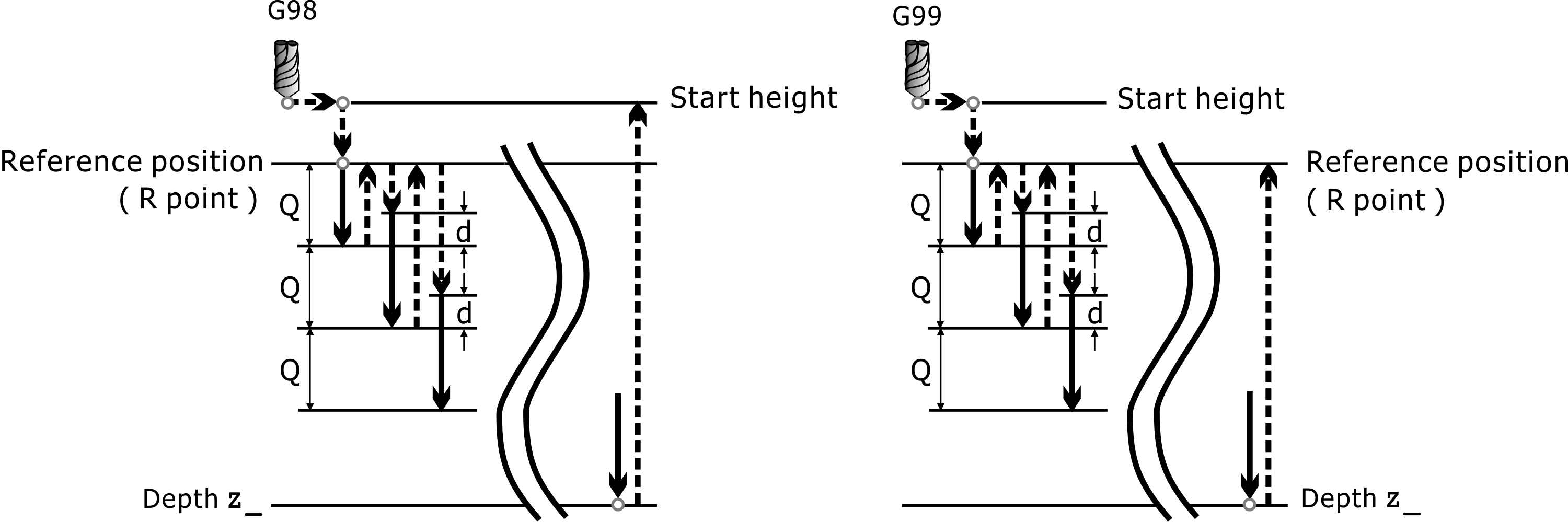 • G73/G83: High Speed Peck Drilling Cycle/Peck Drilling Cycle with Chip Breaking
