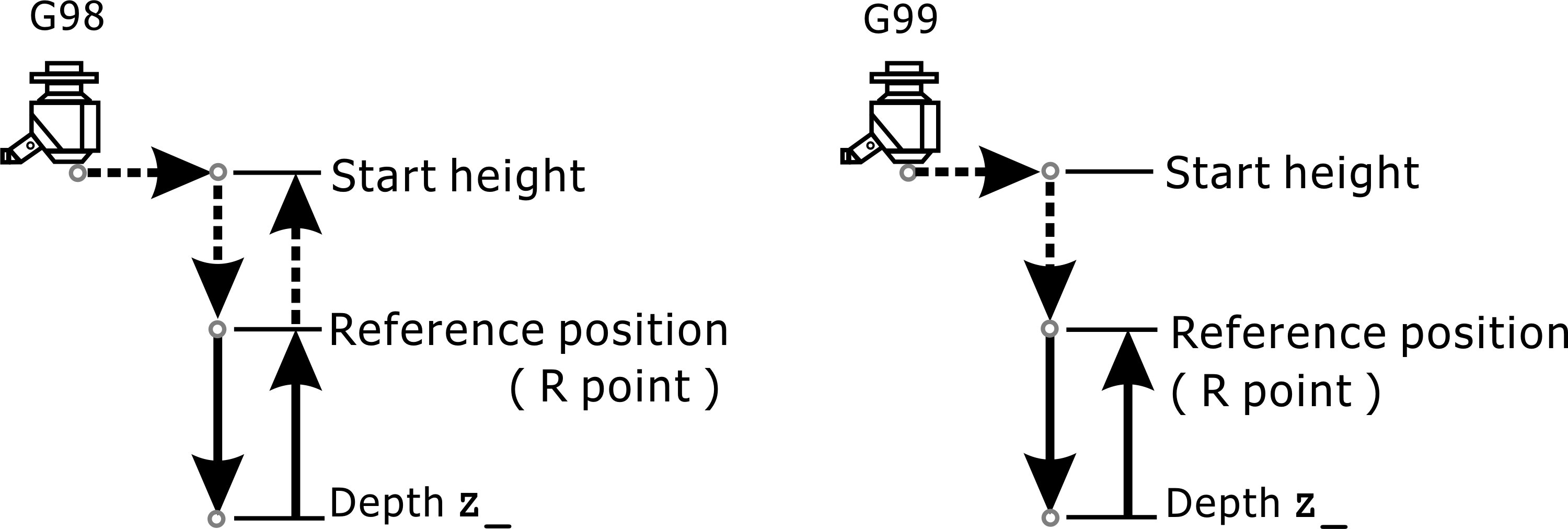G98/G99: Can cycle command returns original starting height/reference height R point