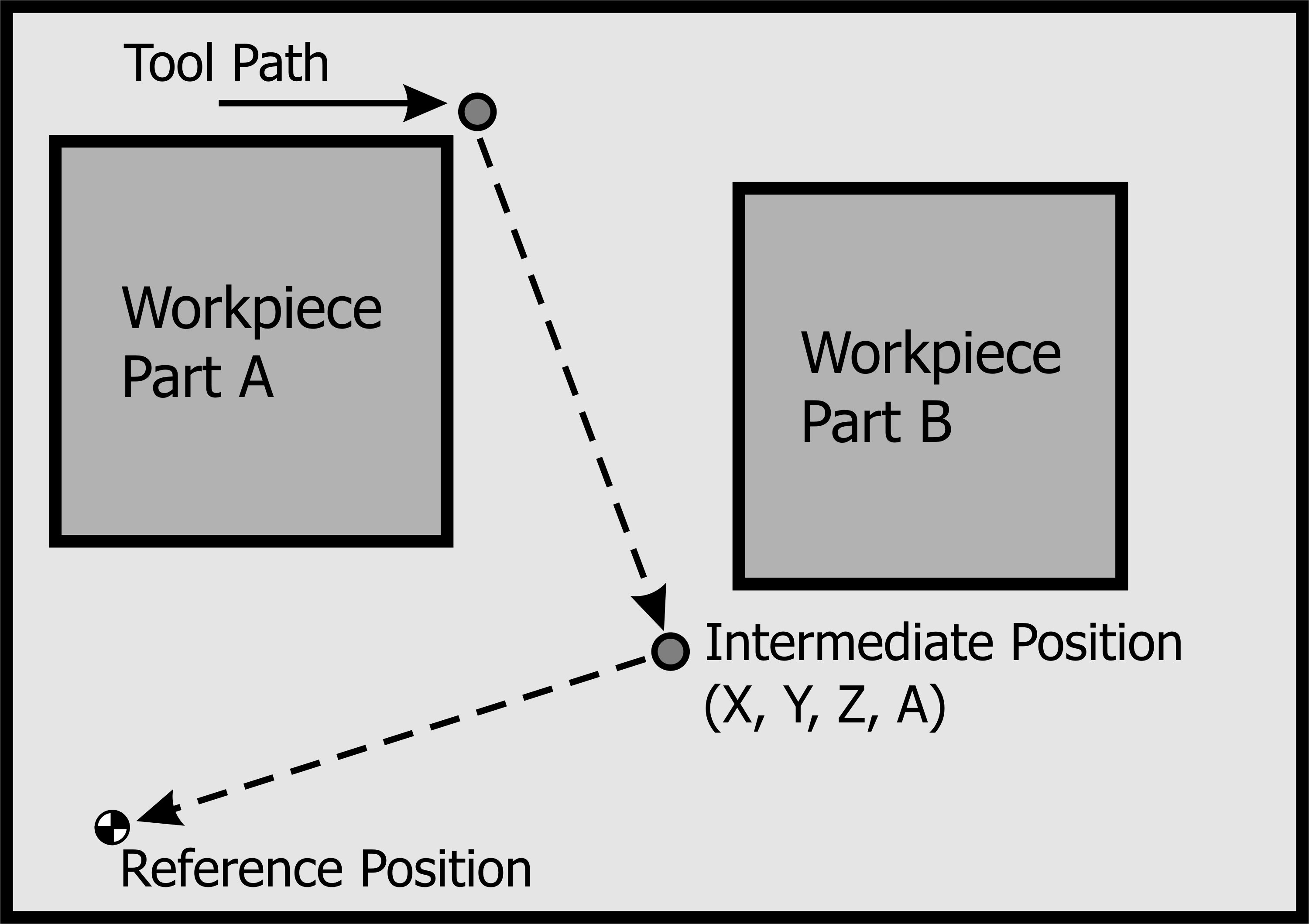 The reference point can be used as a temporary stop position for changing the tool or workpiece during machining, reference point is the mechanical origin.