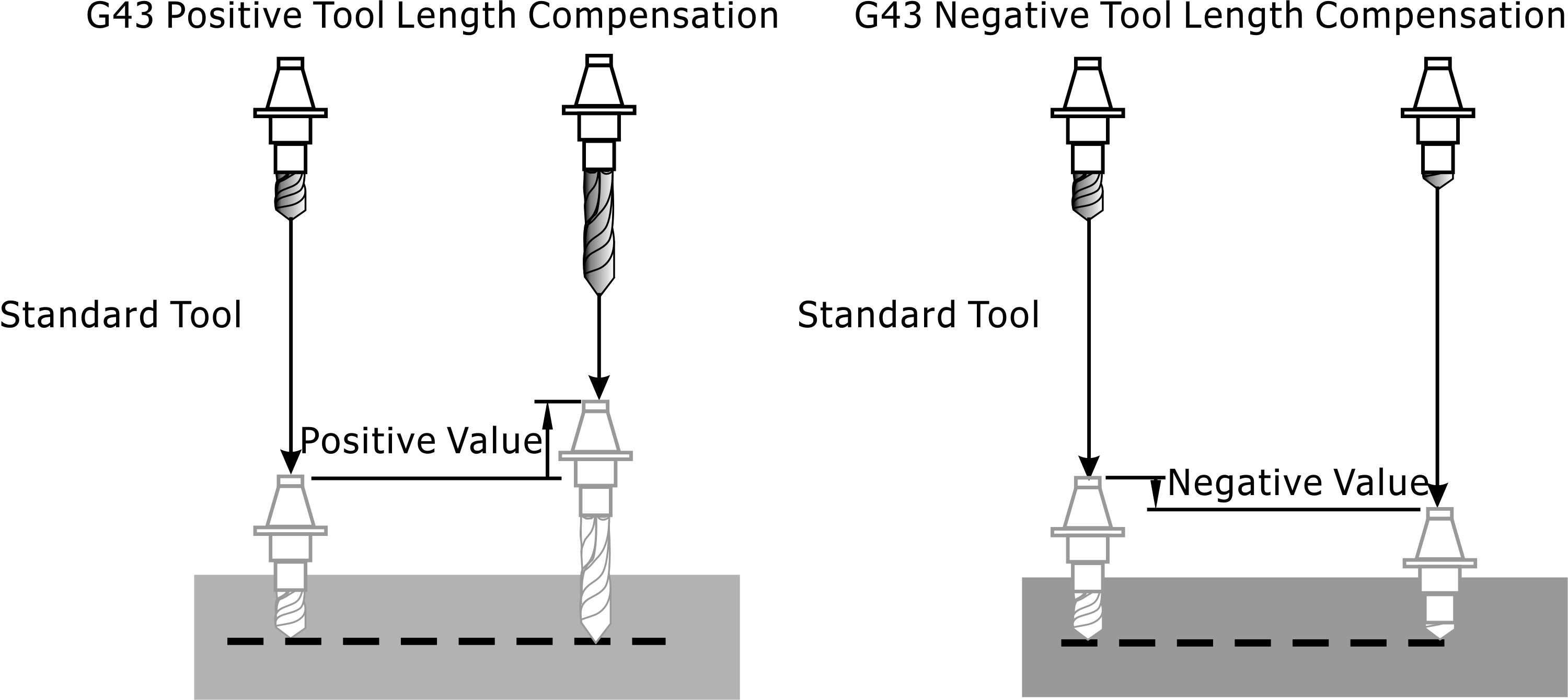 G43: Tool Length Compensation (Positive/Negative)