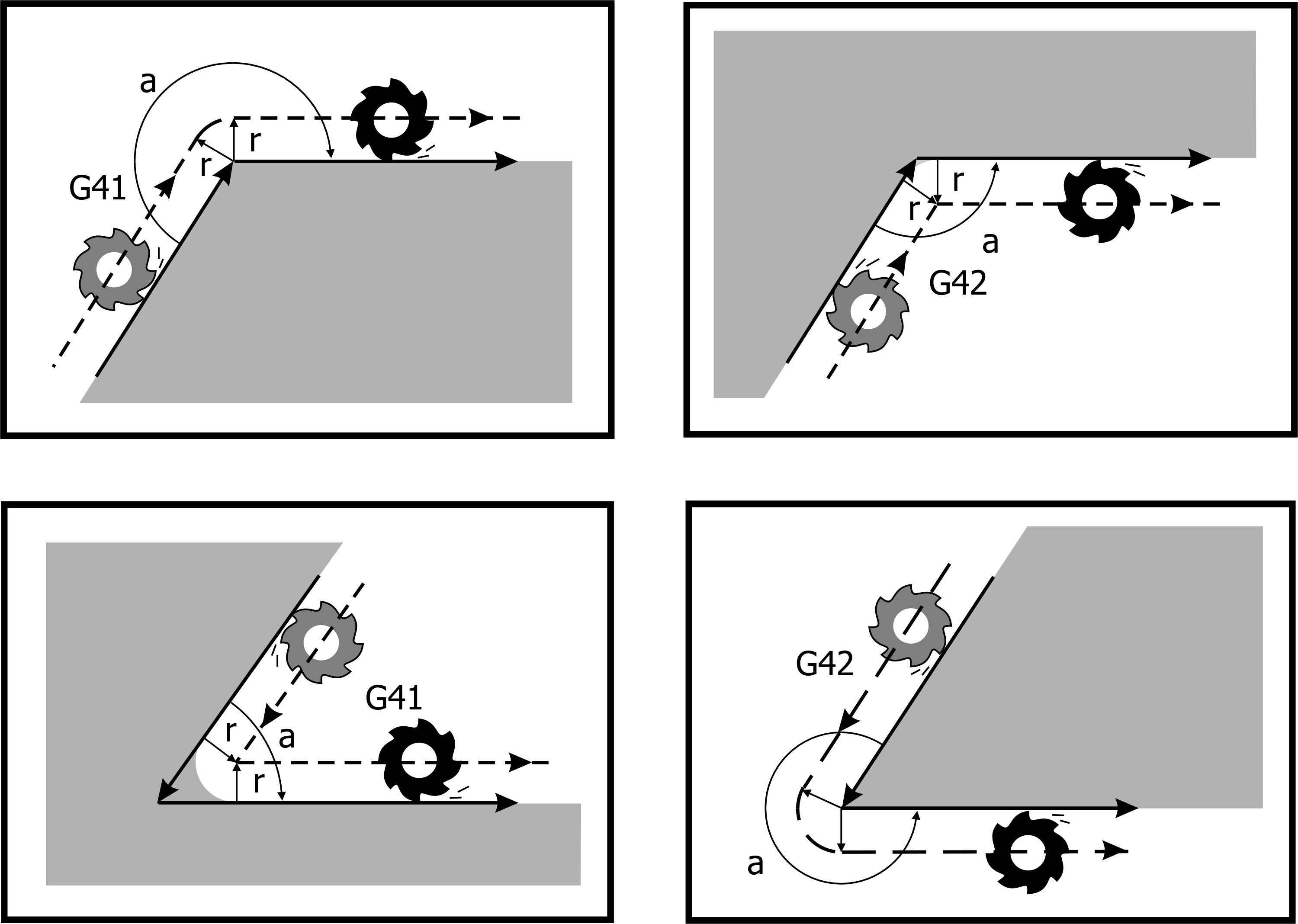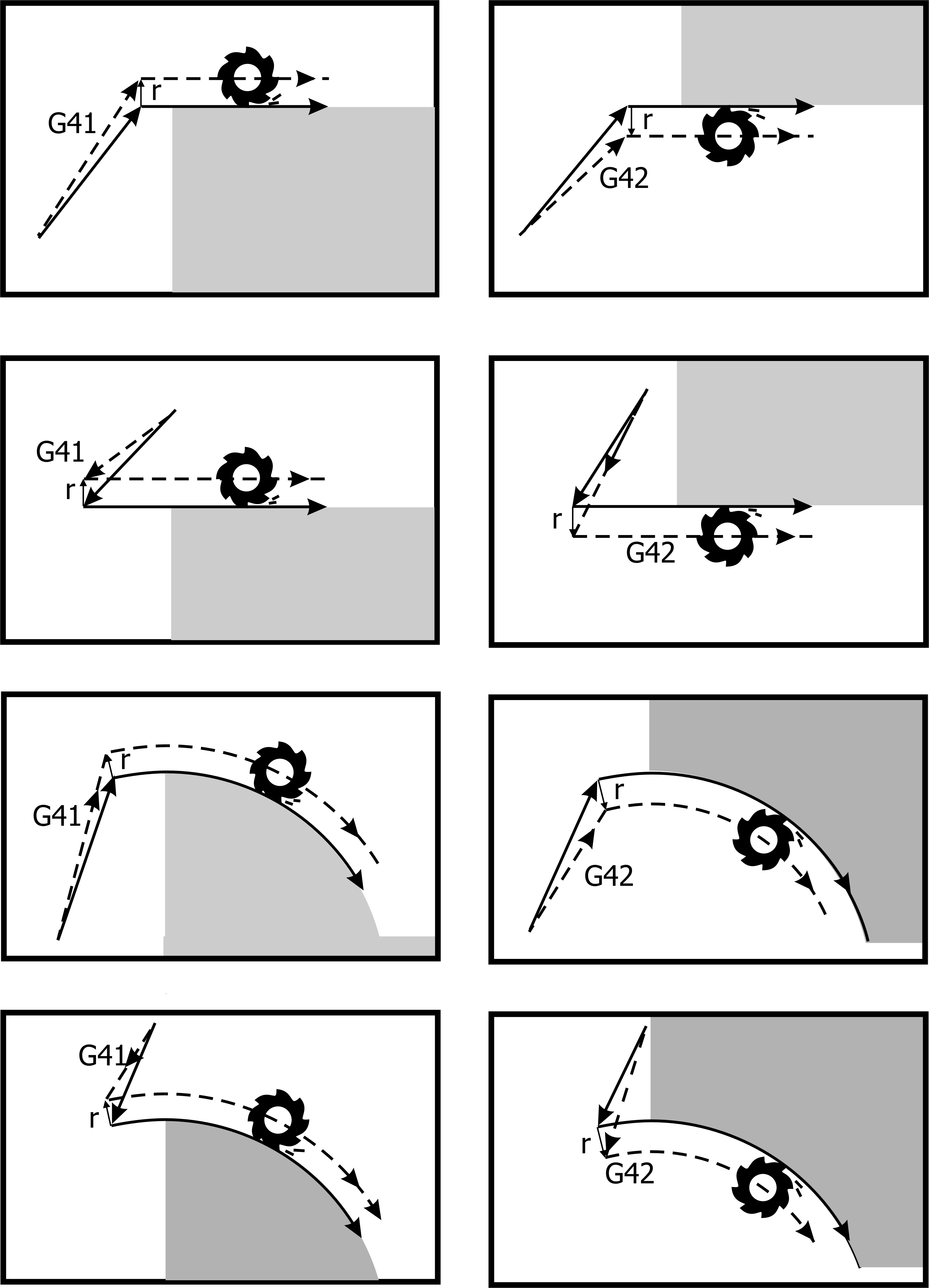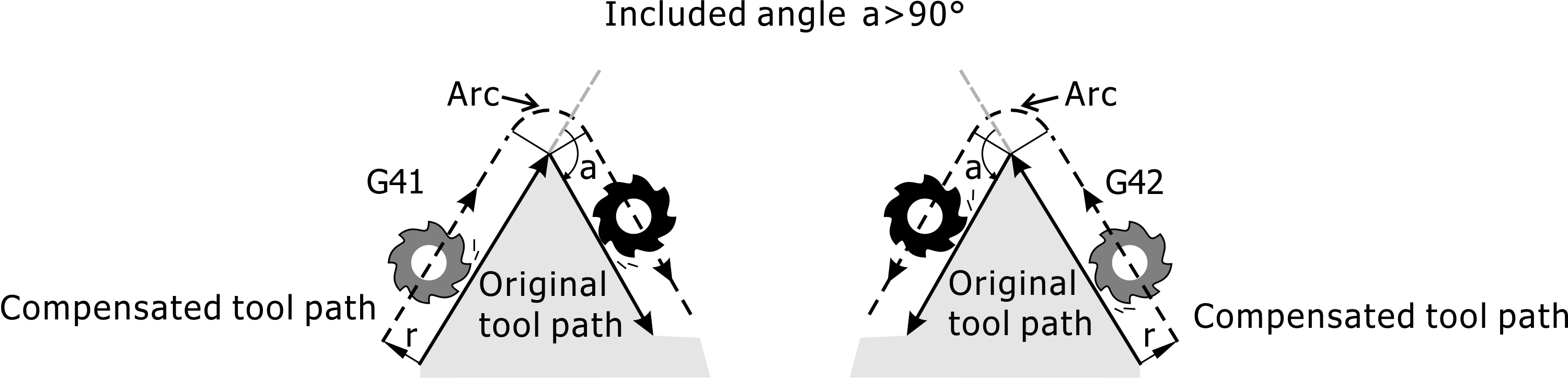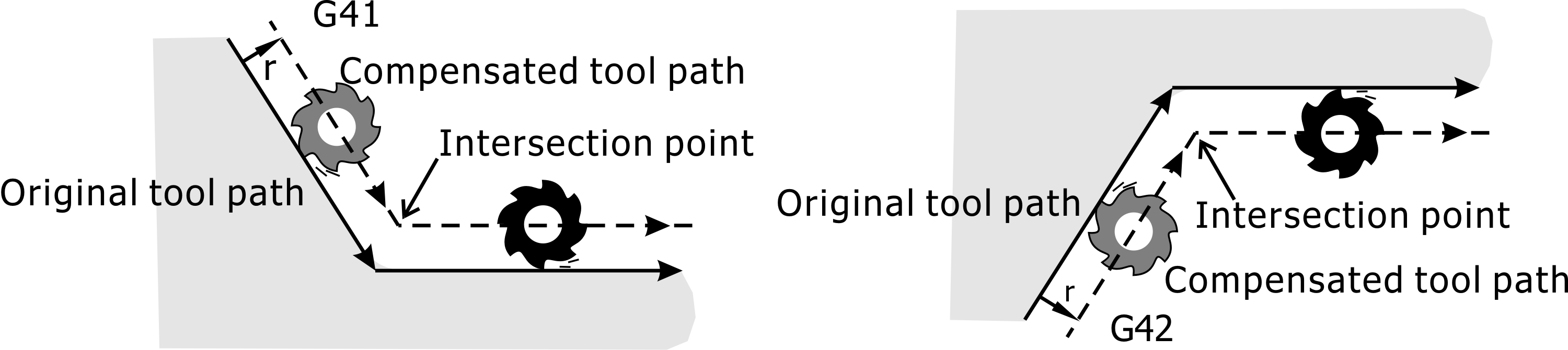 • G41/G42: During Tool Radius Compensation