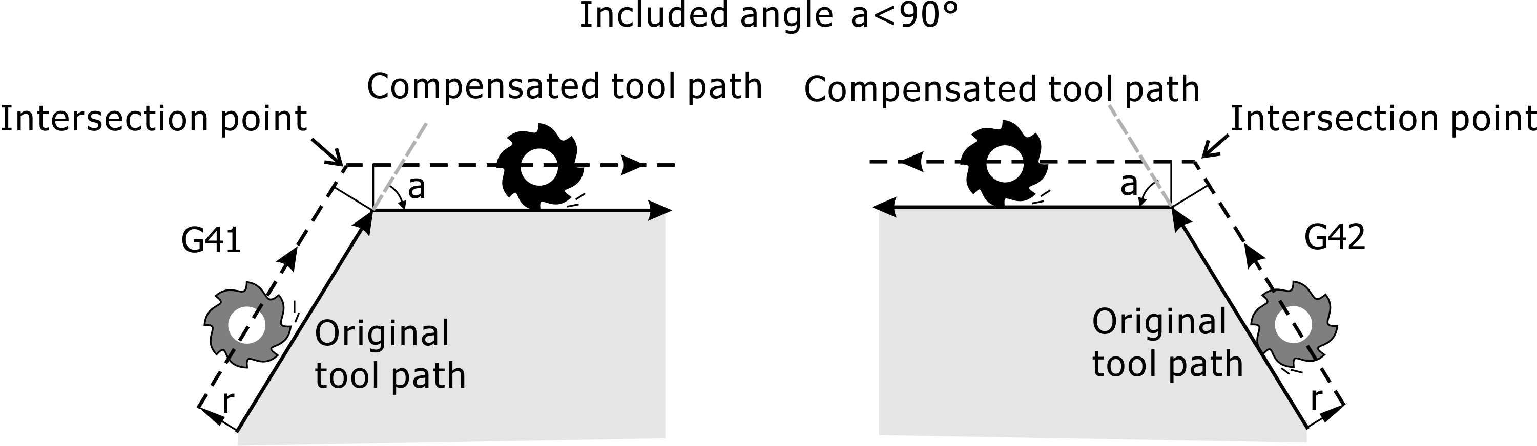 Intersetcion Point of Tool Paths with an Included Angle Less Than 90 Degrees